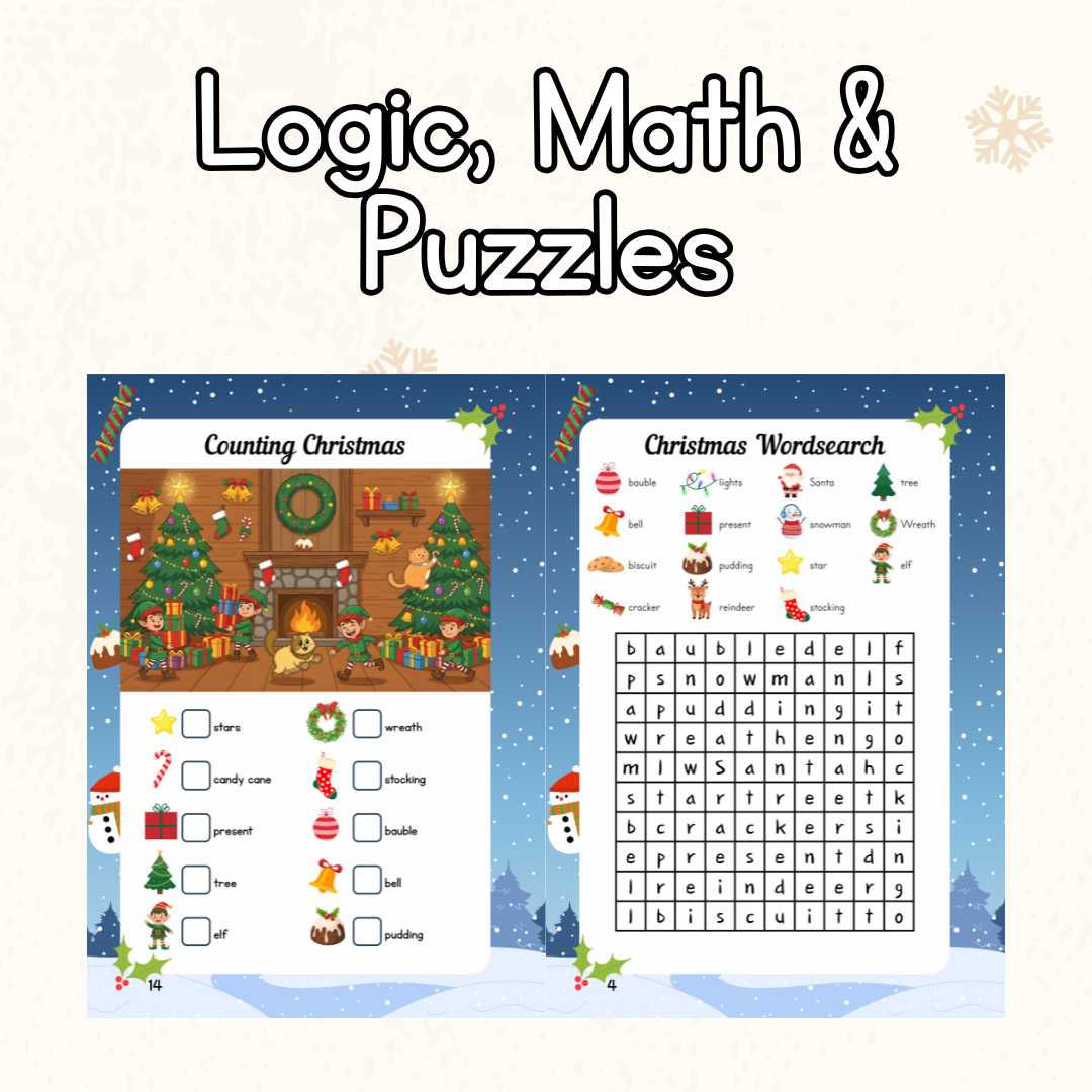 • Math & Observation: "Counting Christmas" challenges kids to find and count hidden items in a busy festive scene.